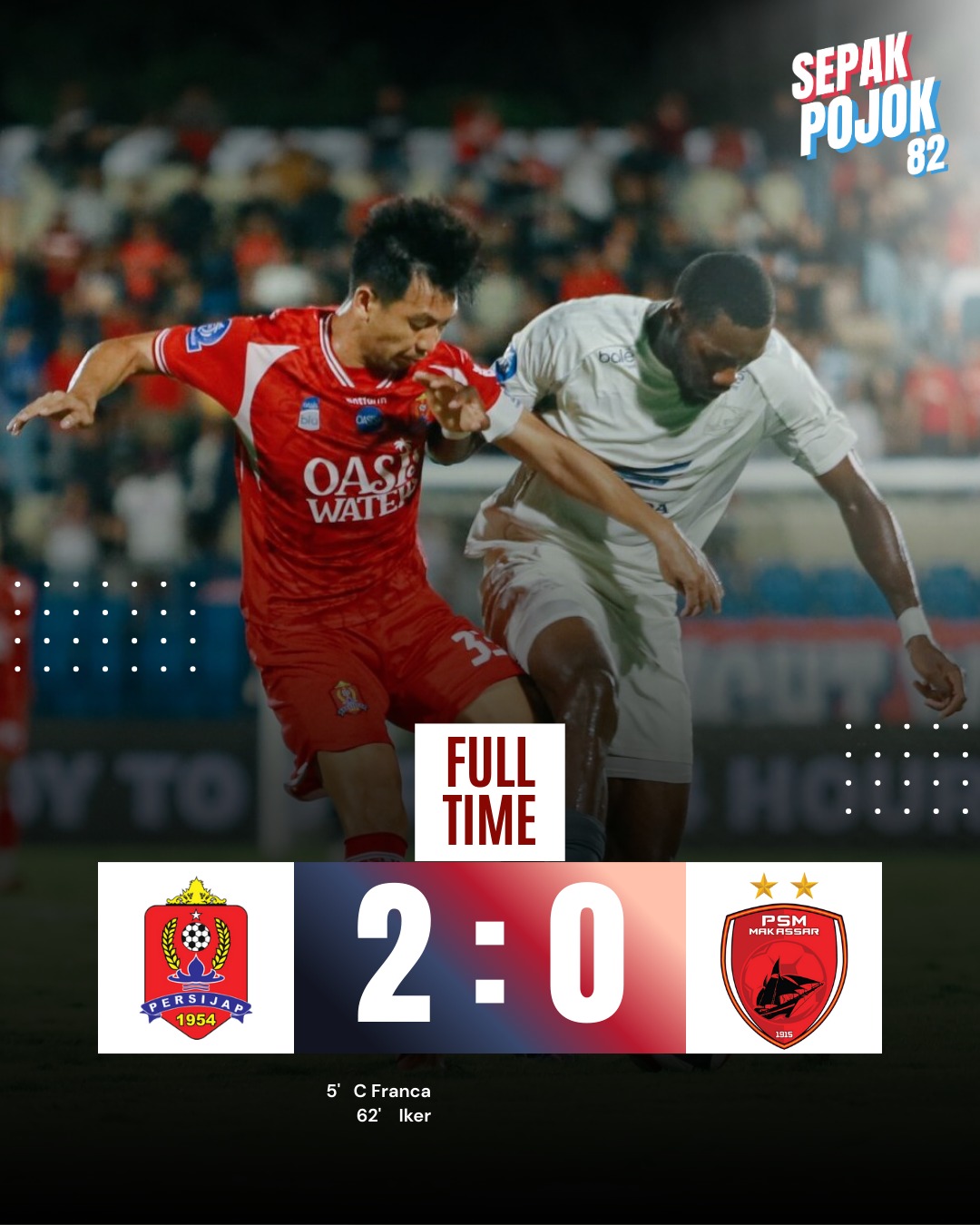 Skor 2-0 bertahan hingga laga usai. Persijap Jepara mengamankan kemenangan penting, sementara PSM Makassar pulang dengan pekerjaan rumah besar.